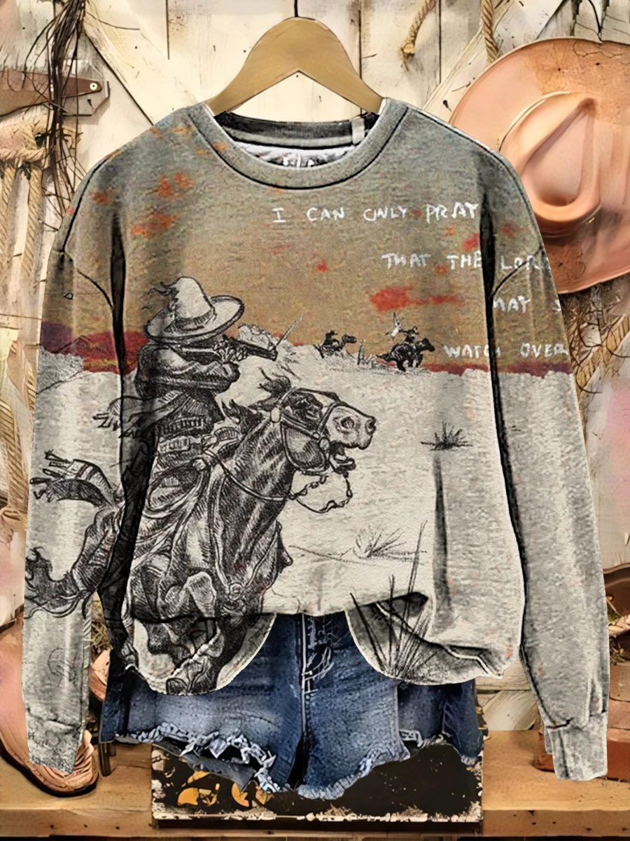 Retro Western Bunny Casual Cotton Sweatshirt