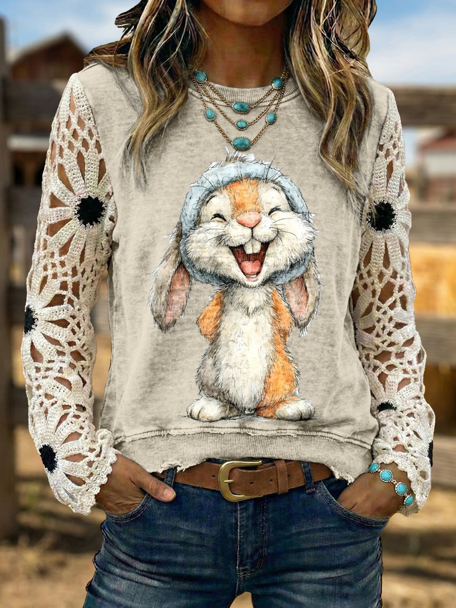 Vintage Western Art Soft Casual Crocheted Flowers Easter Sweatshirt