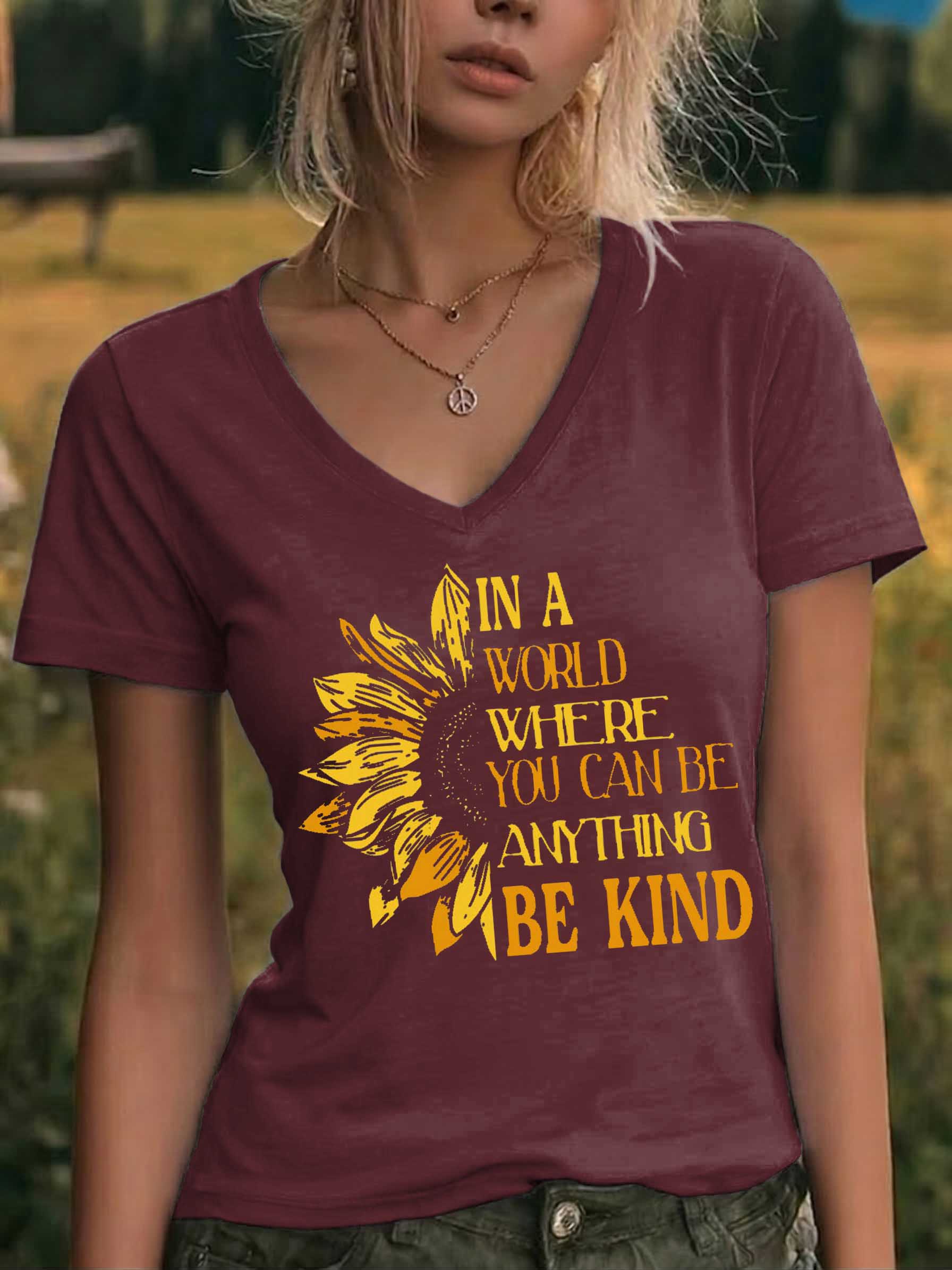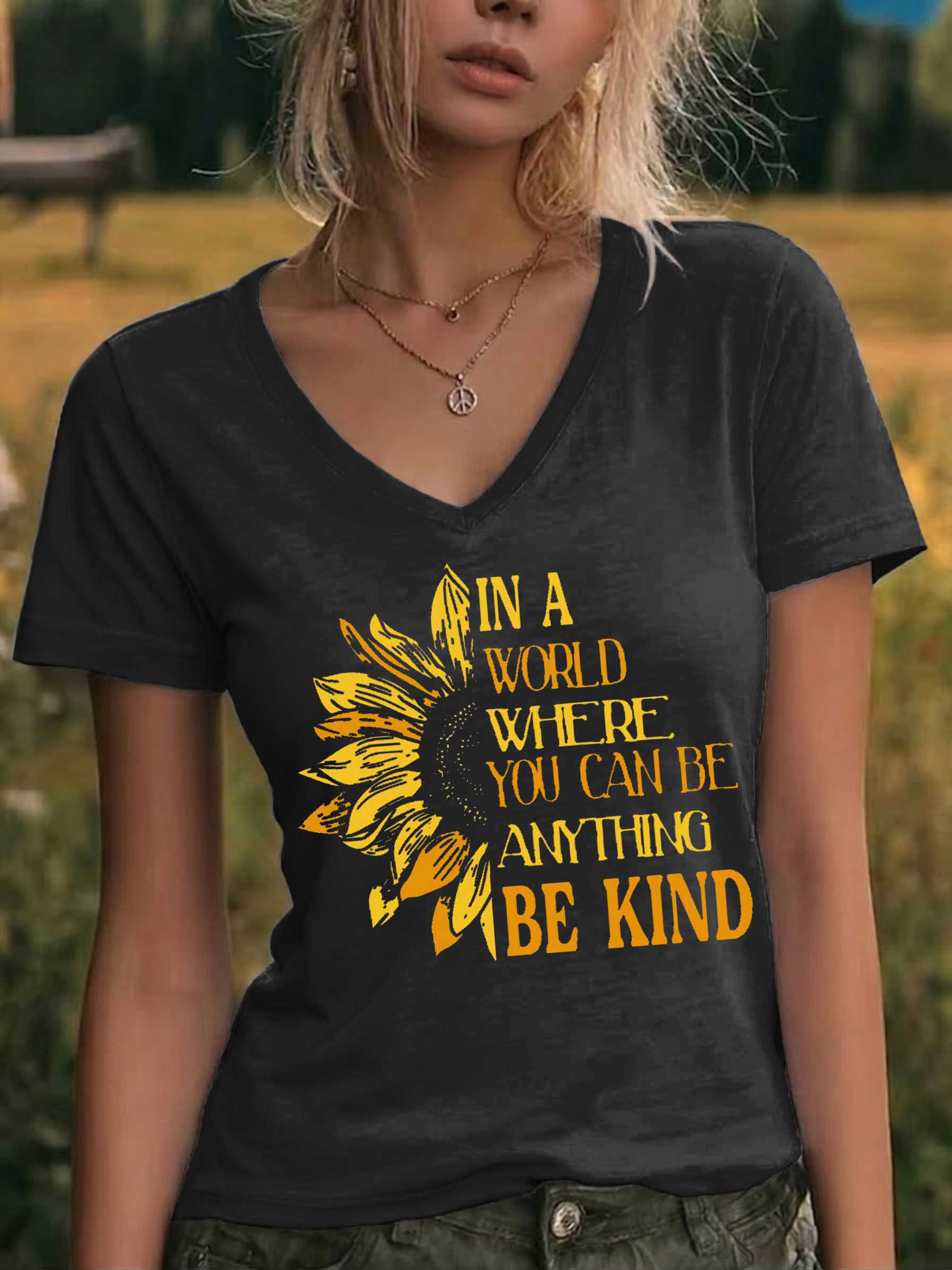 In A World Where You Can Be Anything Be Kind Sunflower V-neck Casual T-shirt