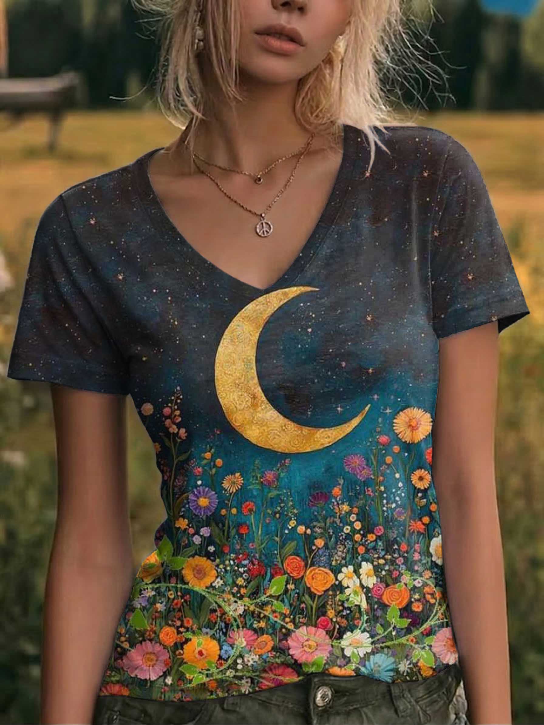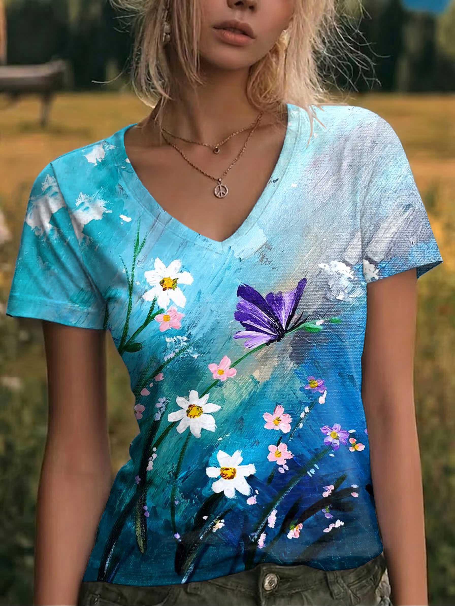 Stay Loyal To Your Own Peace Floral V-neck Casual T-shirt