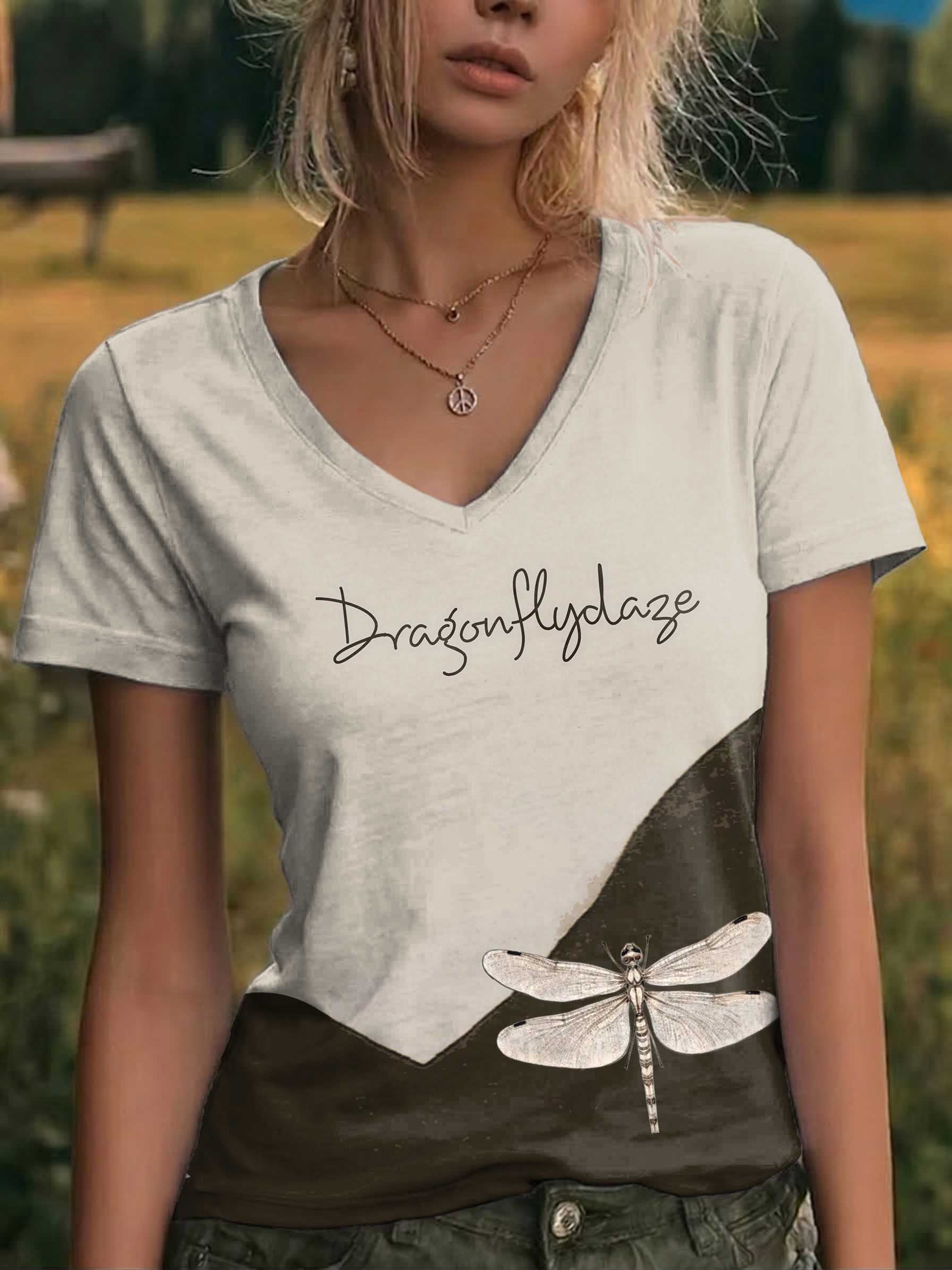 I'm A Survivor Dragonfly V-neck Casual T-shirt
