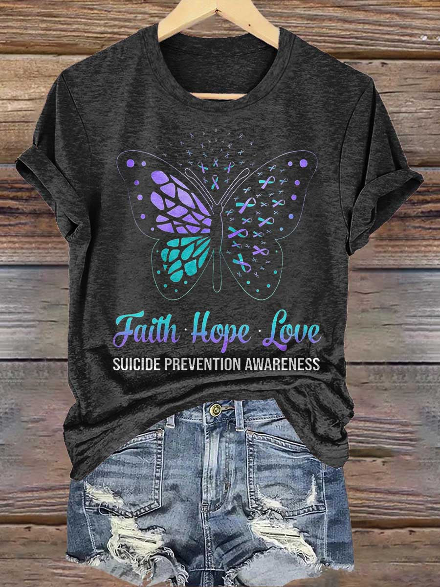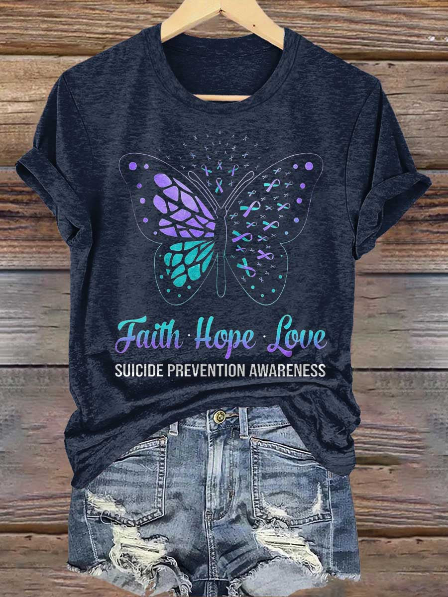 Faith Hope Love Suicide Prevention Awareness Print T-shirt