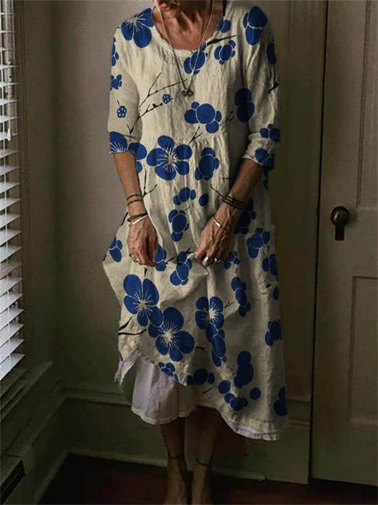 Cherry Blossom Japanese Lino Art Linen Blend Maxi Dress