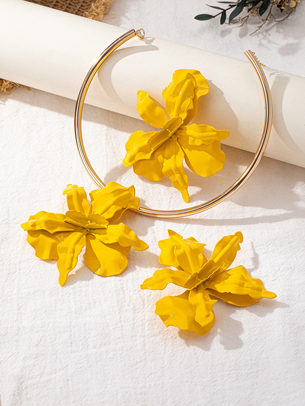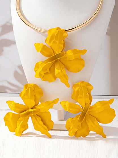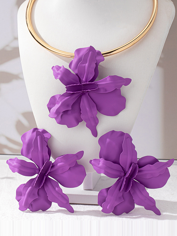Flower Shape Necklaces Accessories + Drop Earrings