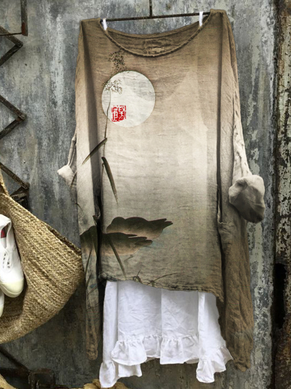Full Moon Night Pond Japanese Art Linen Blend Tunic