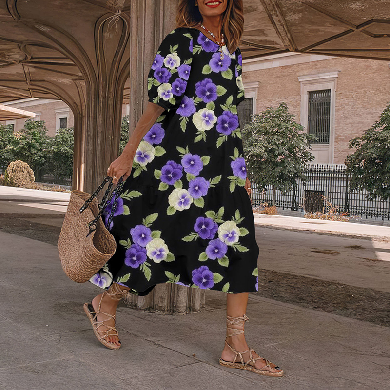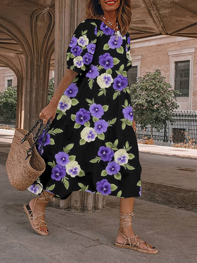 Japanese Purple Floral Art And Spring Midi Dress