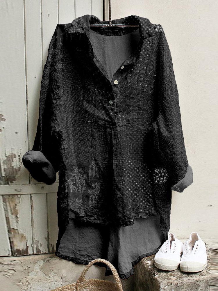 Japanese Traditional Sashiko Art Linen Blend High Low Tunic