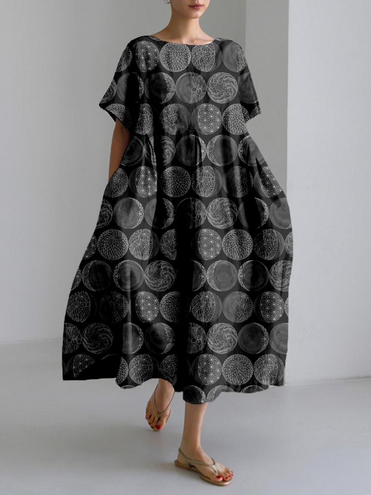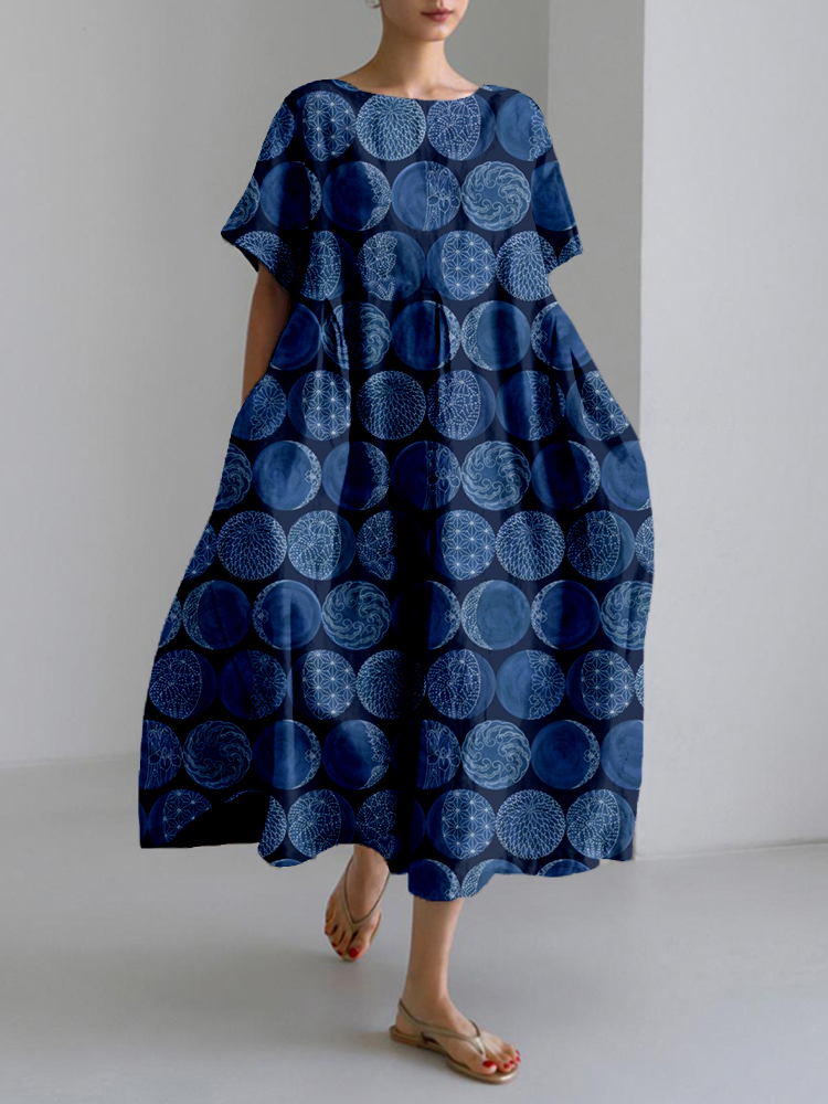 Sashiko Moon Phases Japanese Art Linen Blend Maxi Dress