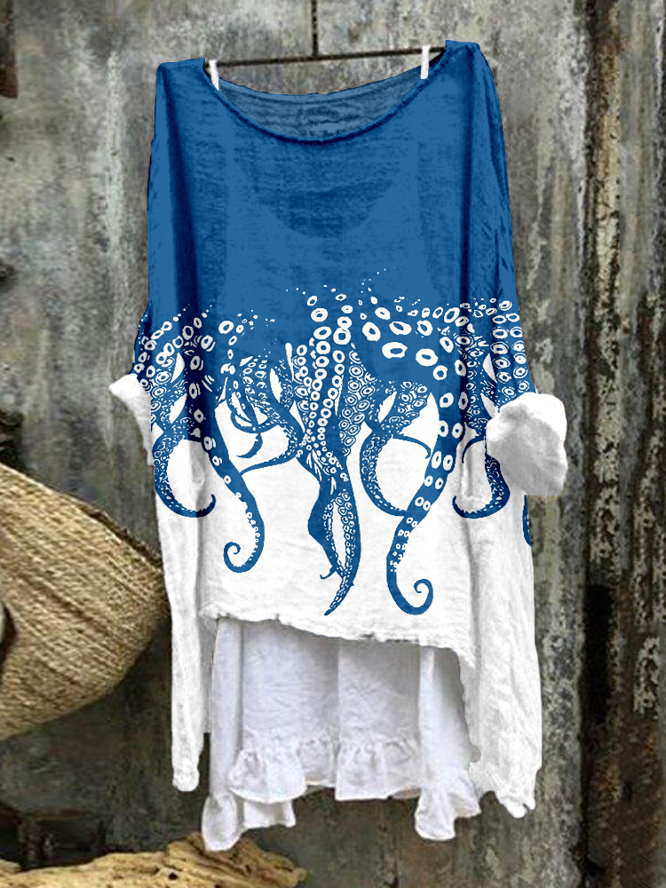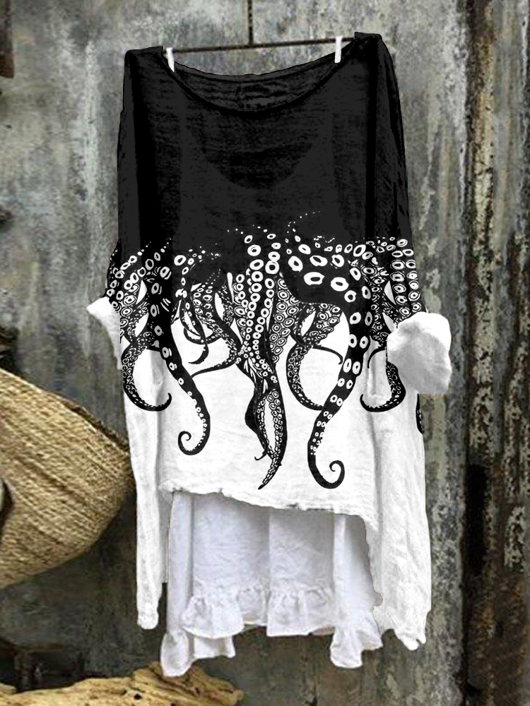 Tentacles Lover Essential Contrast Linen Blend Tunic