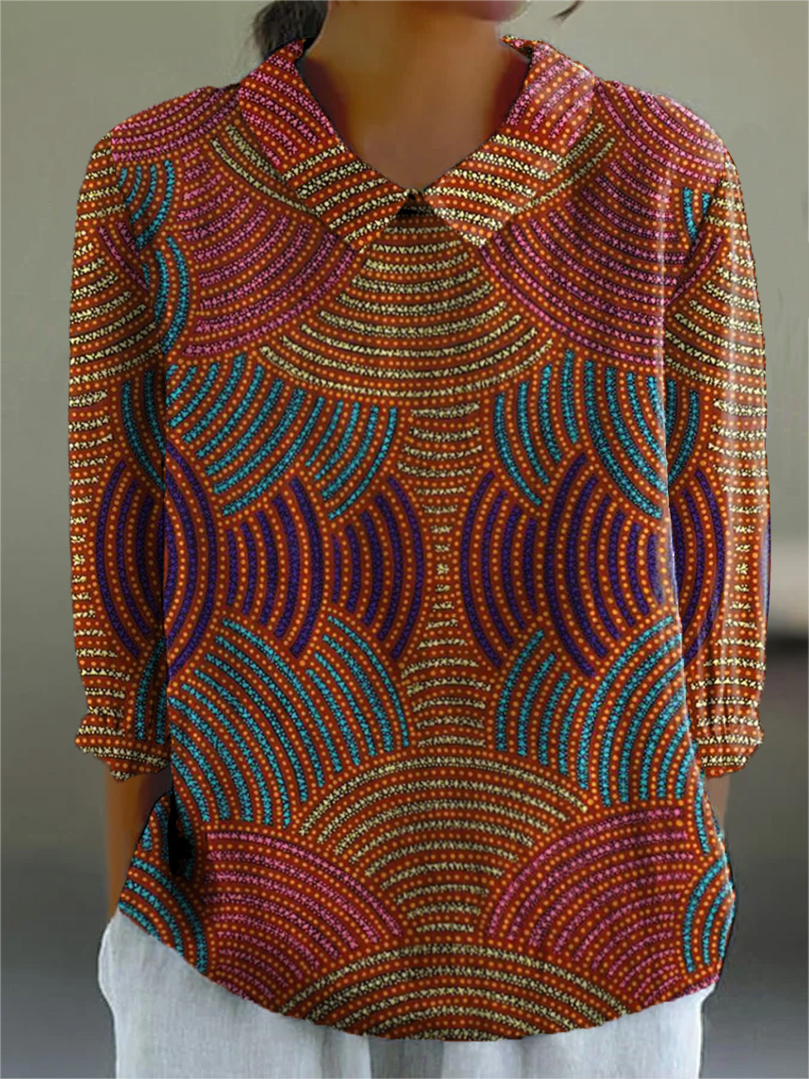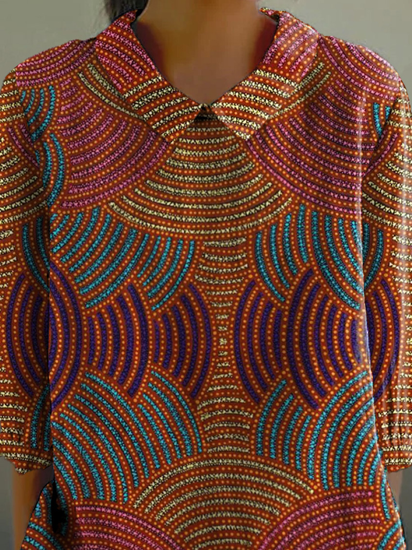 Tribal Style Geometric Pattern Printed Women's Casual Cotton And Linen 3/4 Sleeve Shirt