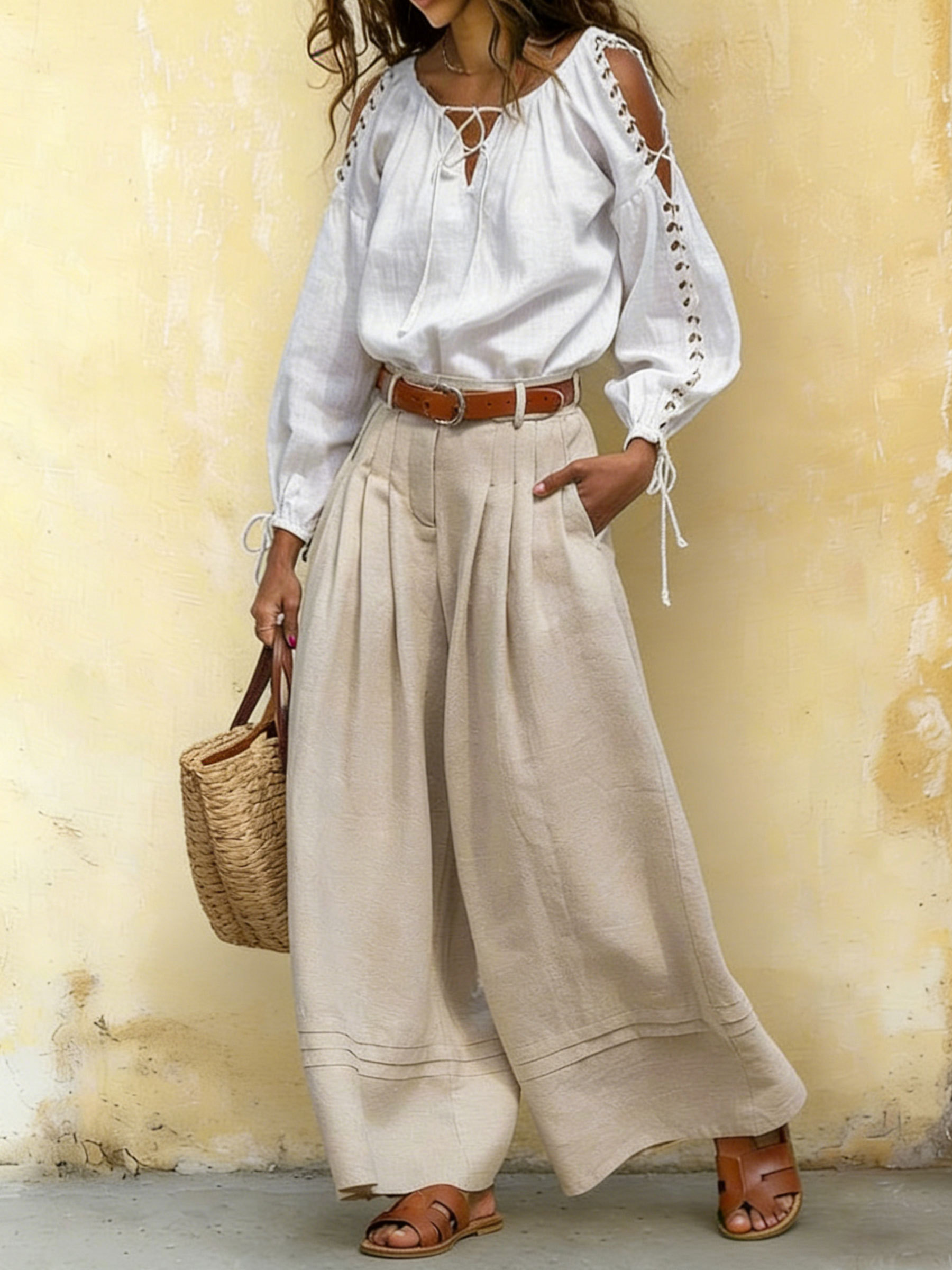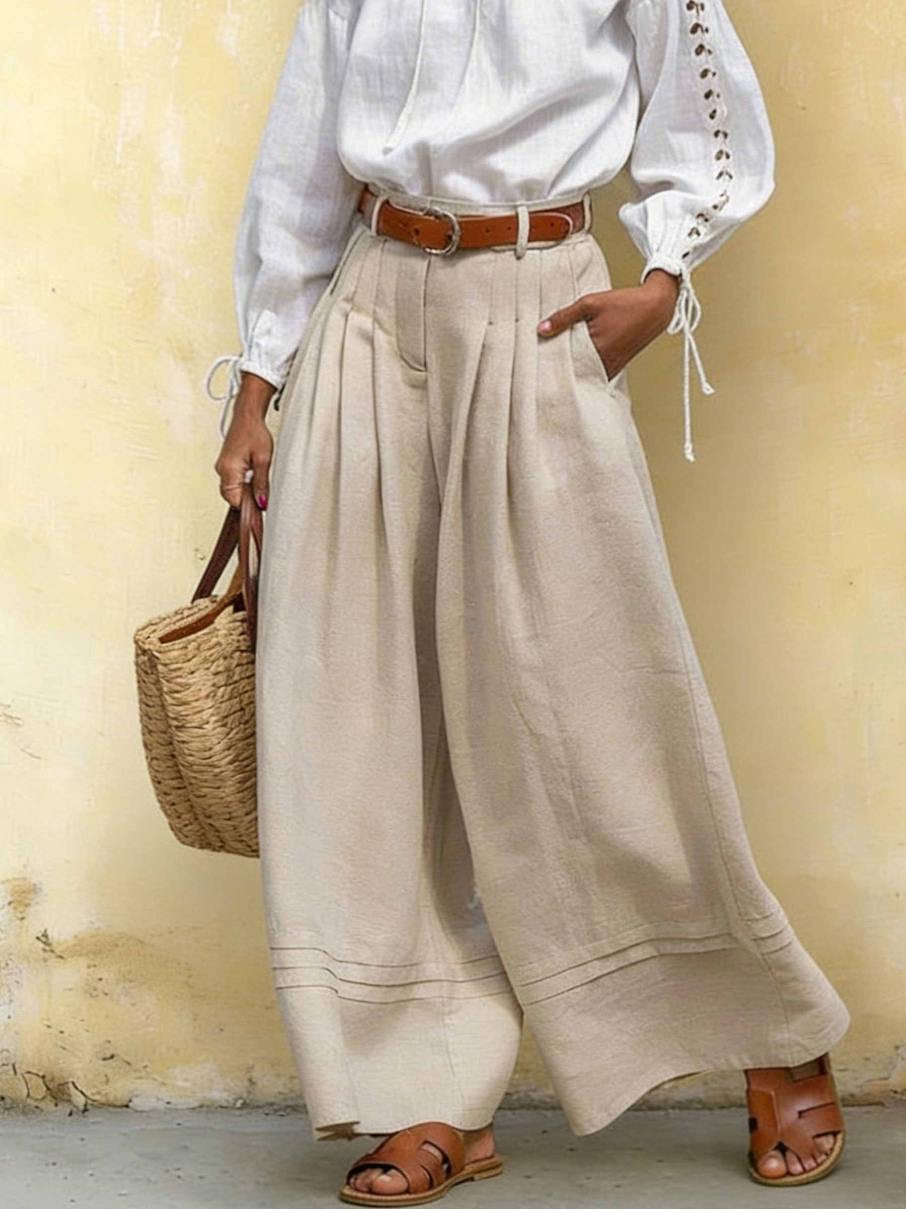 Women’s Causal Solid-color Cotton-linen Stylish Wide Pants
