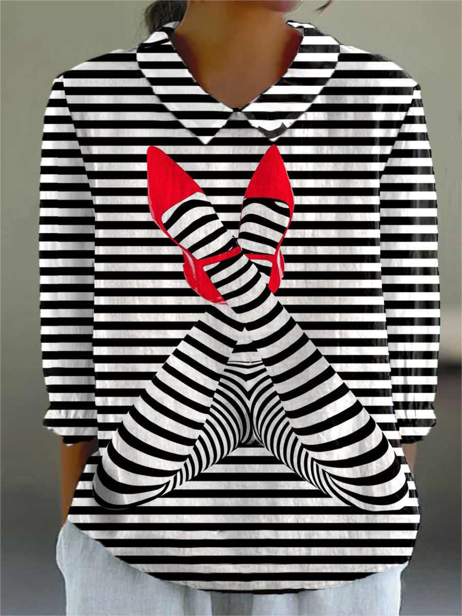 Women's Abstract Art Print Casual Cotton And Linen 3/4 Sleeve Shirt