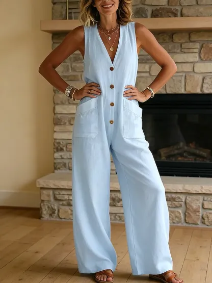 Women's Casual Fashion Long Sleeved Buttons Jumpsuit
