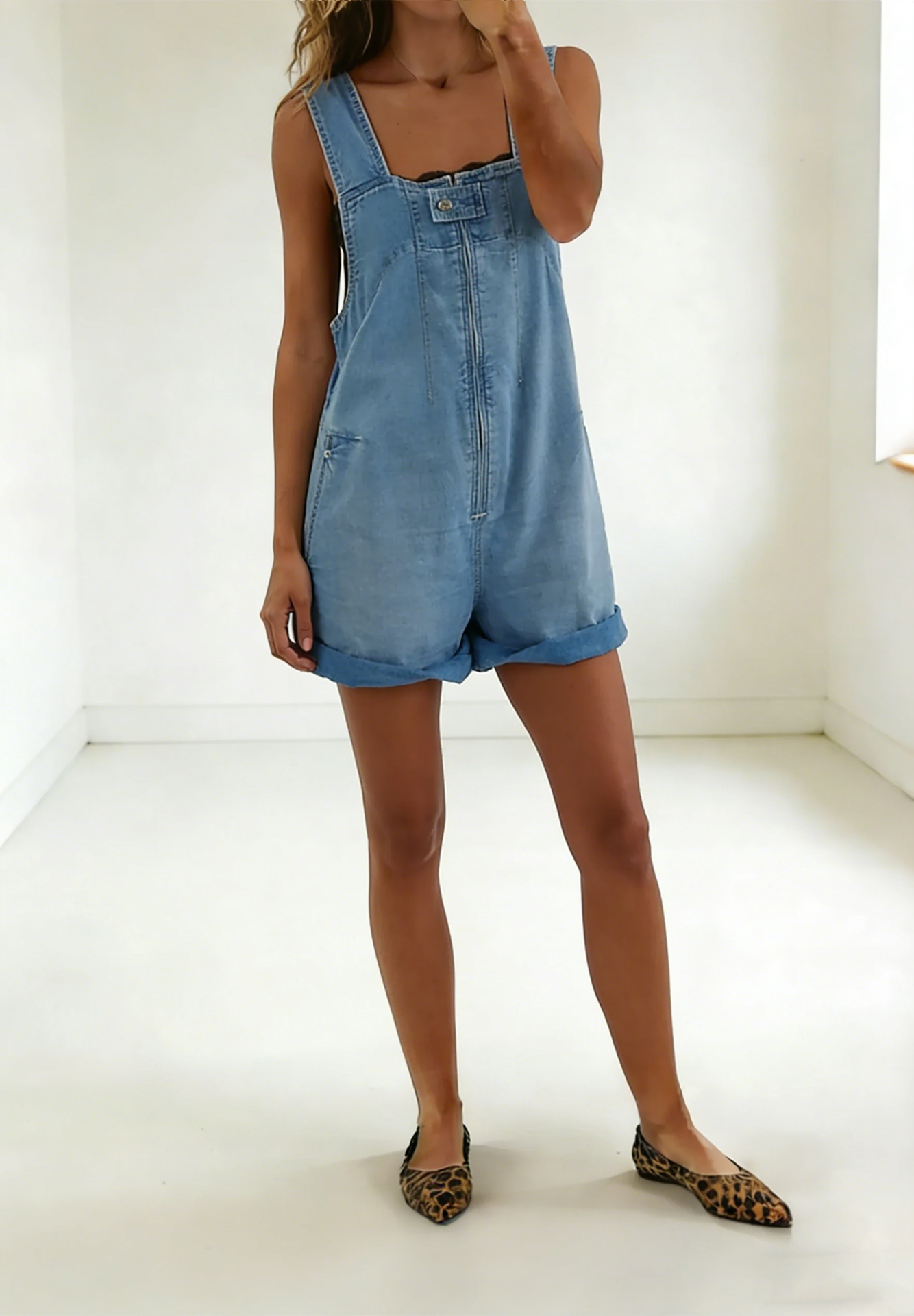 Women's Casual Sleeveless Denim Jumpsuit with Pockets
