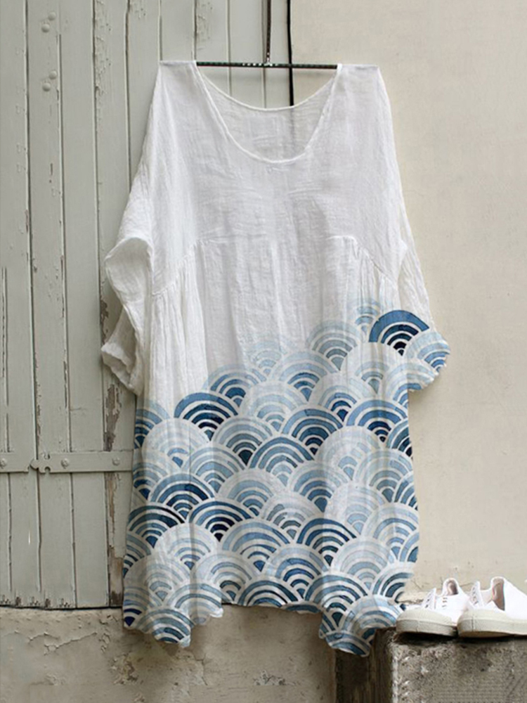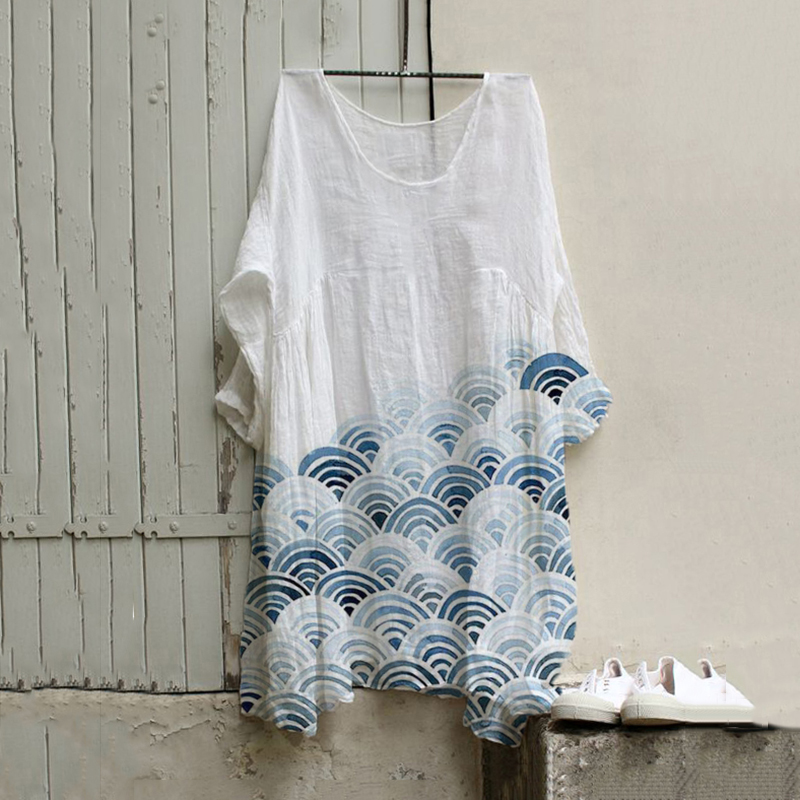 Women's Japanese Art Waves Pocket Loose Casual Maxi Dress