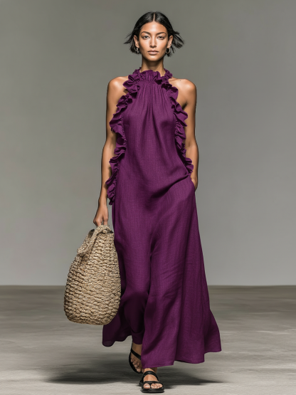 Product Name: Women’s Minimalist Linen-blend Sleeveless Maxi Dress With Ruffle Details