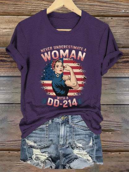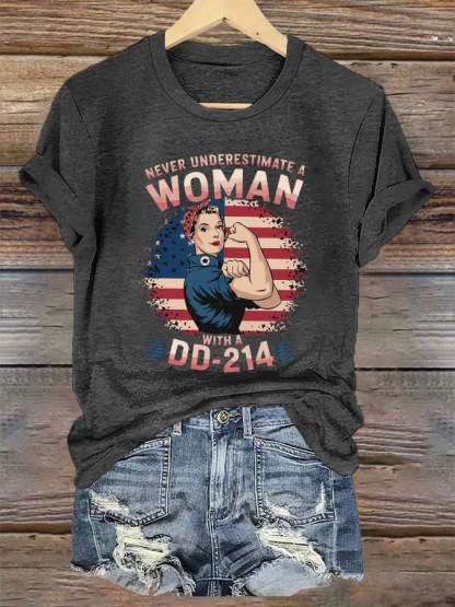 Women's "Never Underestimate a Woman with DD-214" Print T-Shirt