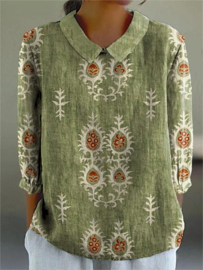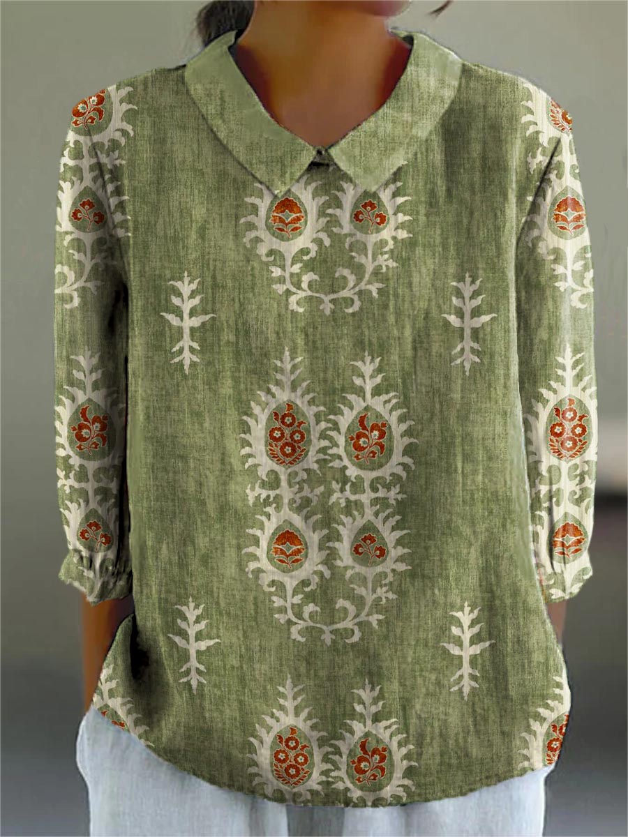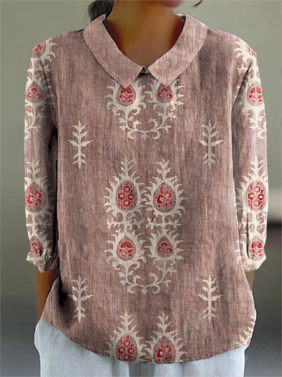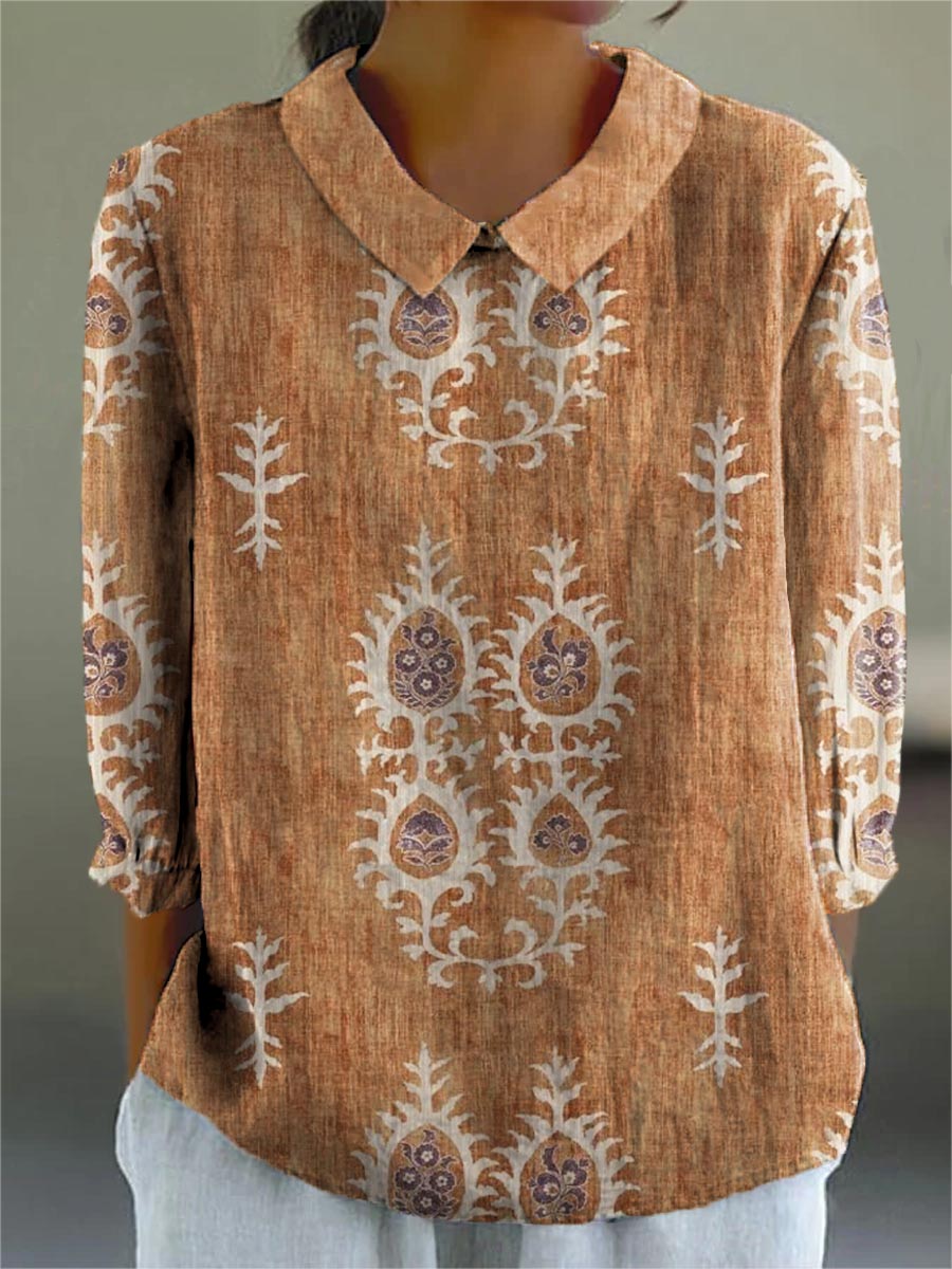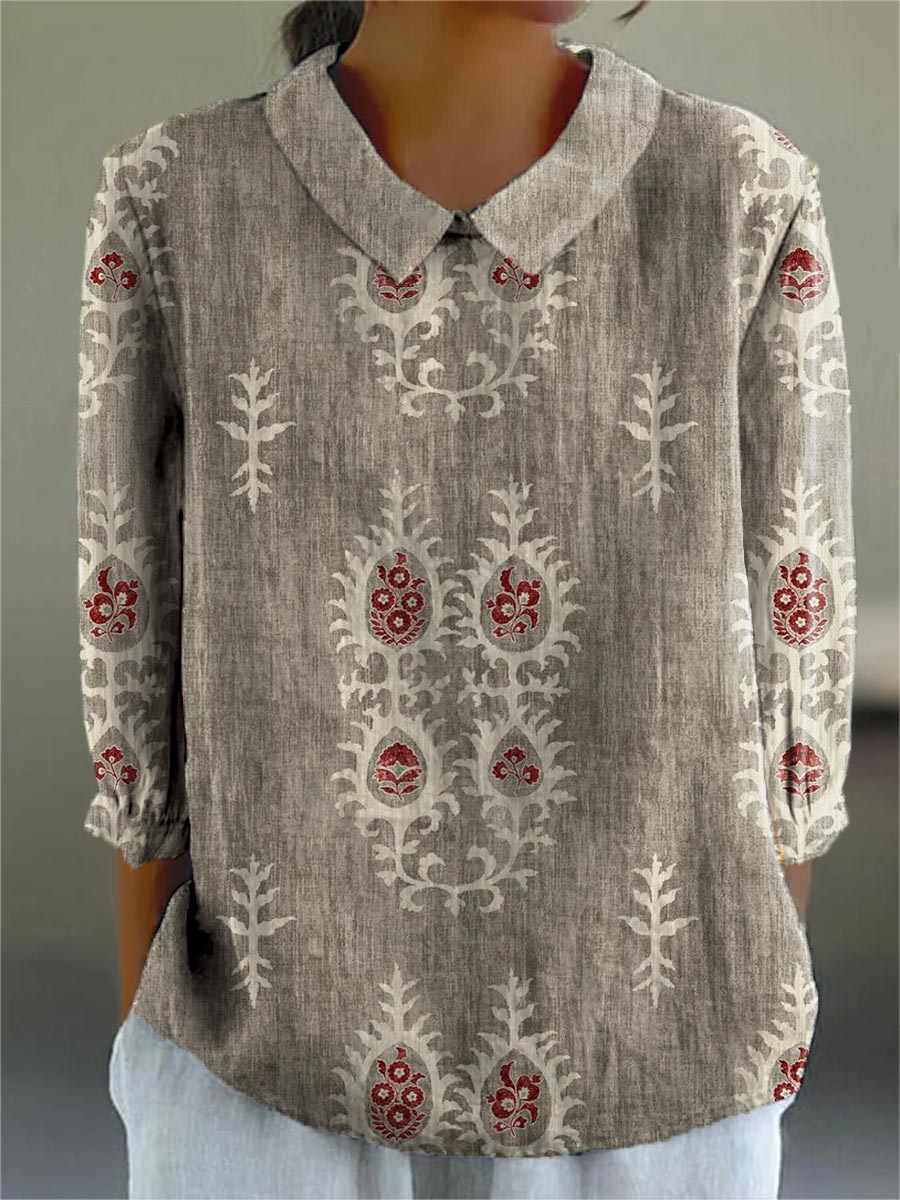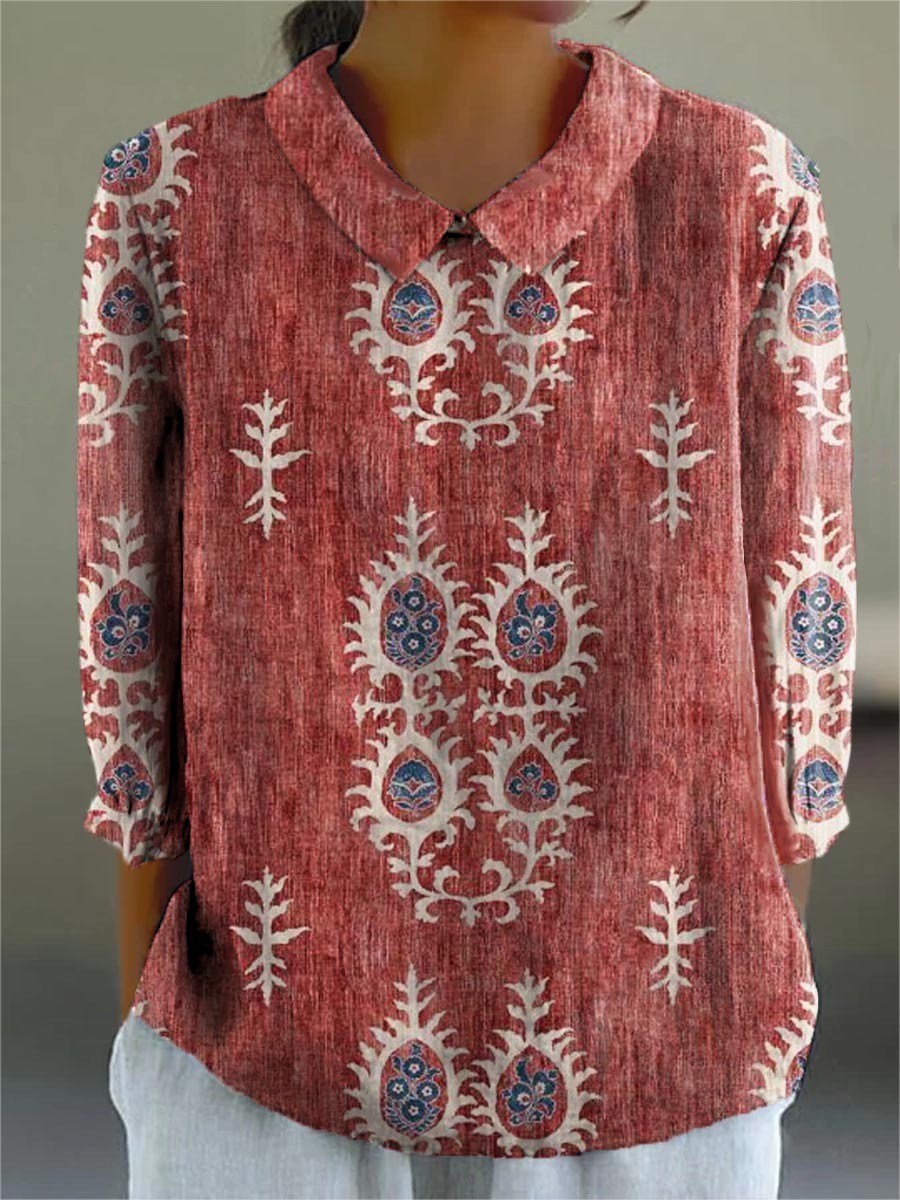 Women's Vintage Ethnic Pattern Art Print Casual Cotton And Linen 3/4 Sleeve Shirt